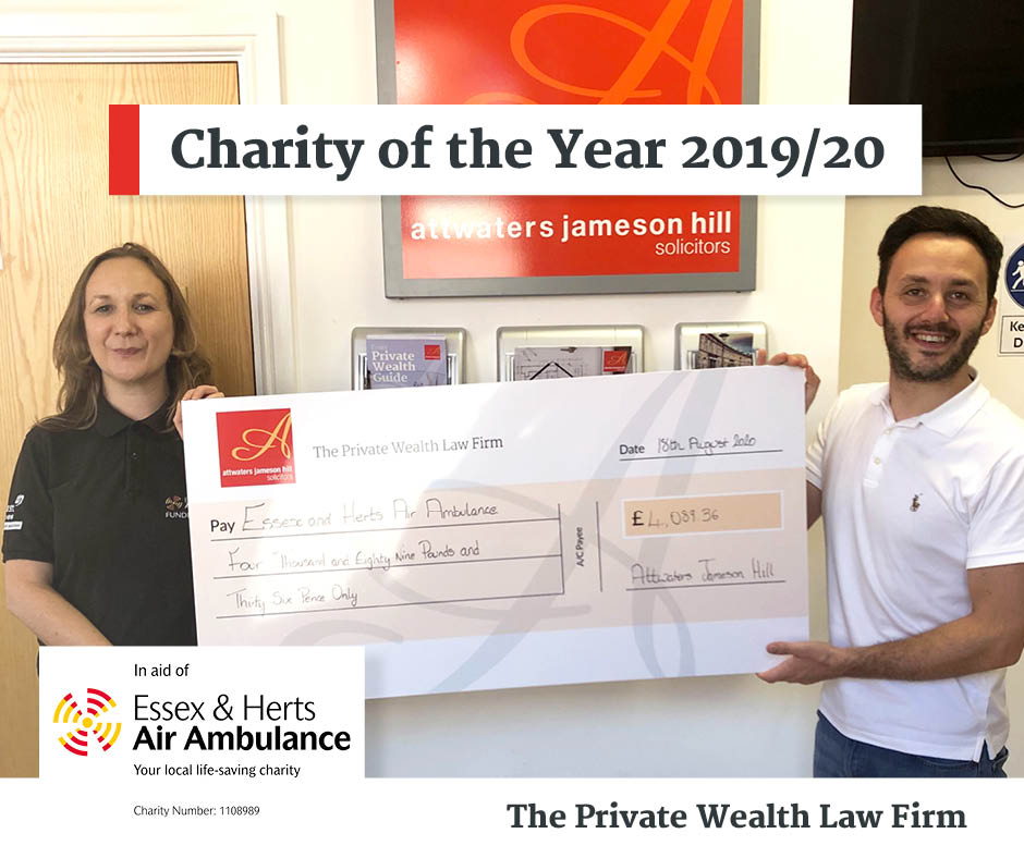 Yesterday (18th August 2020) Salvatore Amico, Partner and Head of Town and Country Planning, presented EHAAT’s Natasha Robertson with a cheque for the fundraising work we have done this year, totaling £4,089.36. Each flight mission for EHAAT costs a staggering £2,200, so we are thrilled to be able to present our contribution to enable the charity to continue its great work.